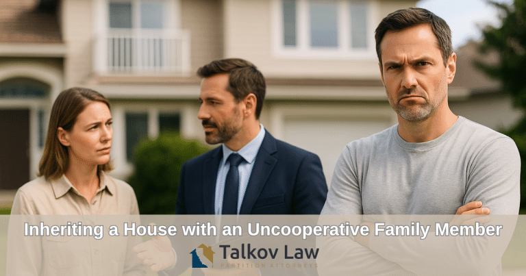 If you’ve inherited a house with an uncooperative family member, Talkov Law’s partition attorneys can help you protect your rights. Call (877) PARTITION (727-8484) today.